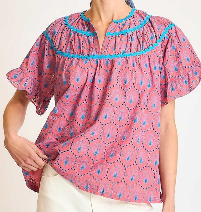 Pink and Turquoise Eyelet Embroidered Top